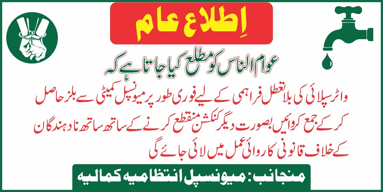Notice for water consumers
